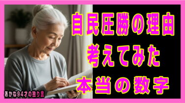 皆さま、ごきげんよう。あかねでございます。今回は、自民圧勝はなぜなのか、無党派層の若者の行動について少し考えてみたいと思います。本日も名古屋の片隅で、「チームあかね」が一生懸命集めてくれた新聞記事や、ネット上の喧騒を眺めながら、こうして独り...