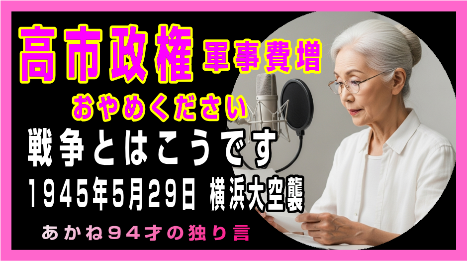 軍拡の先にある戦争とはどんなものなのかを1945年5月29日横浜大空襲の体験でお話いたします。