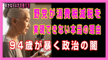 未分類 なぜ野党は「消費税減税」を公約しながら実行できないのか? ― 旧民主党の歴史的遺産と2025年の政治情勢分析 みなさま、こんにちは。あかねです。最近、特に感じることがあるのです。政治家の言葉の軽さ、そして私たちが何度も同じ轍を踏み続けていることへの深い憂いです。歴史的好機と野党の沈黙2024年から2025年にかけて、野党にとって千載一遇のチャンスが... 2025.09.28 未分類